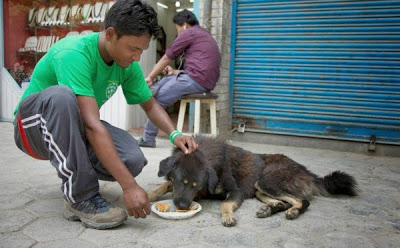 -Un equipo de rescate de animales (Humane Society International) que está en Nepal desde el 30 de abril para proporcionar ayuda de emergencia después del terremoto, ha publicado imágenes de este grupo (mayormente de mujeres) que alimentan a perros y ayudan a que sobrevivan con el alimento disponible